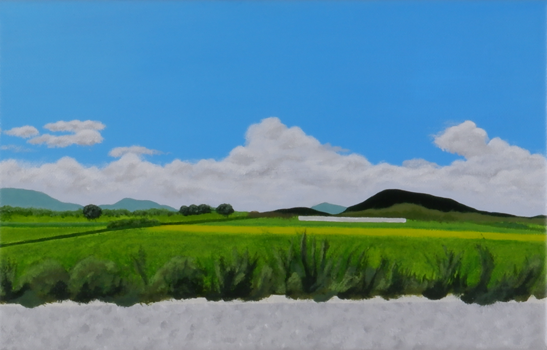 I captured the passing scenery on canvas, moved by a sense of longing as I drove past it during a trip with my children.